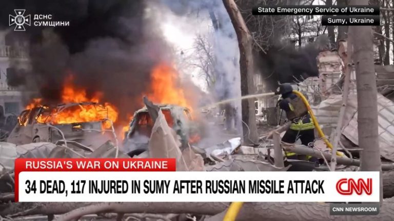 The weekend’s strike was, to Ukraine’s allies, a gruesome reminder of Moscow’s true intent in its invasion: to terrify Ukrainians into submission. The target, Sumy, is also in Russia’s immediate crosshairs, as President Vladimir Putin claims to seek a buffer zone inside of Ukraine by pounding this thriving border city.